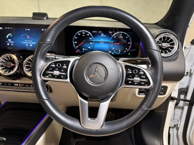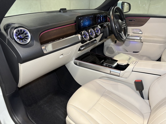 国内ブランド最多となるメルセデス・ベンツのSUVに9車種目となる「GLB」。究極のオフローダーであるGクラスからインスピレーションを受けた、スクエアなエクステリアデザインと高い悪路走破性を持つ本格的なSUVでありながら、広い室内空間に7人乗車を標準とし、かつ日本の都市部でも取り回しのよいボディサイズを実現した。ラインアップは、ガソリンエンジン搭載のエントリーモデル「GLB180」、ディーゼルモデルに4輪駆動モデル「GLB200d 4マチック」を設定。「GLB180」は排気量1.4L オールアルミニウムの「282」を搭載したガソリンエンジン搭載。ターボチャージャーは電子制御ウェストゲートを搭載しており、フレキシブルな過給圧制御により、低負荷域においても最適な過給圧を設定することができる。「GLB200d 4マチック」に搭載される「654」は、2L 直列4気筒クリーンディーゼルターボエンジンで、最高出力150馬力(110kW)、最大トルク320N・mを発生。ターボチャージャーは可変タービンジオメトリーを採用しており、低回転域から高回転域まで全域でトルクフルな加速を可能にしている。その他、ドアやダッシュボードなどに備えられ64色から選択できる間接光のアンビエントライトや、ナビゲーション機能をそれぞれ標準装備。安全運転支援システムとして、アクティブディスタンスアシスト・ディストロニック(自動再発進機能付)や渋滞時緊急ブレーキ機能などを標準装備。今回、「MP202301」仕様の「GLB180」、「GLB200d 4マチック」を設定した。右ハンドル設定。